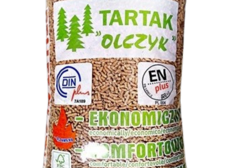 Pellet Olczyk to wysokiej jakości, certyfikowane paliwo stałe (ENplus A1), produkowane z naturalnych, okorowanych trocin drzew iglastych, głównie sosny, pozyskiwanych z własnego tartaku. Cechuje się wysoką kalorycznością, niską zawartością popiołu (≤ 0,7%) i wilgoci (≤ 10%), co zapewnia jego ekologiczność, energooszczędność oraz bezawaryjną pracę kotłów CO. Jest to produkt ekologiczny, bez dodatku lepiszczy, łatwy w transporcie i przechowywaniu, idealny do ekologicznego ogrzewania domów i innych obiektów.